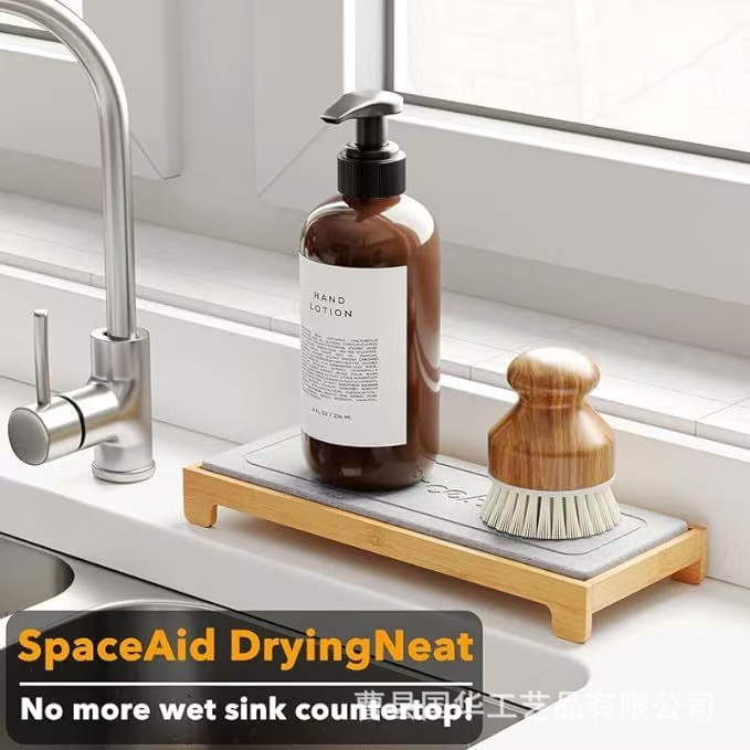 木製カウンタートップ珪藻泥吸収性トレイ取り外し可能なバスルームアメニティ排水乾燥マット竹木製トレイ