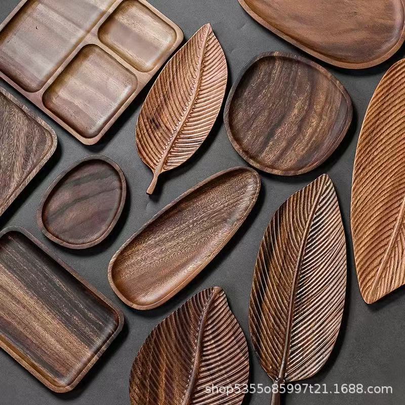 日本の葉の形をした木製トレイ無垢材スナックスナックフルーツトレイクリエイティブドライバブルティートレイ茶室家庭用木製トレイ