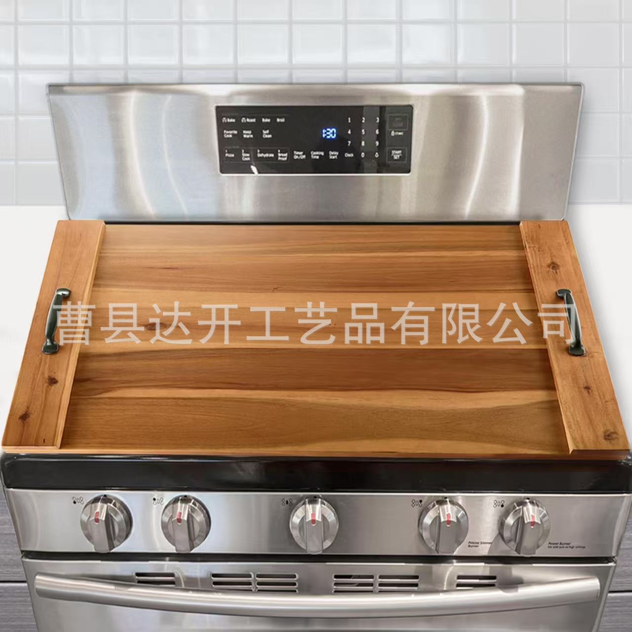 家庭用木製ガスストーブカバートレイレストランサービングプレート金属ハンドル木製サービングプレートサービングトレイ