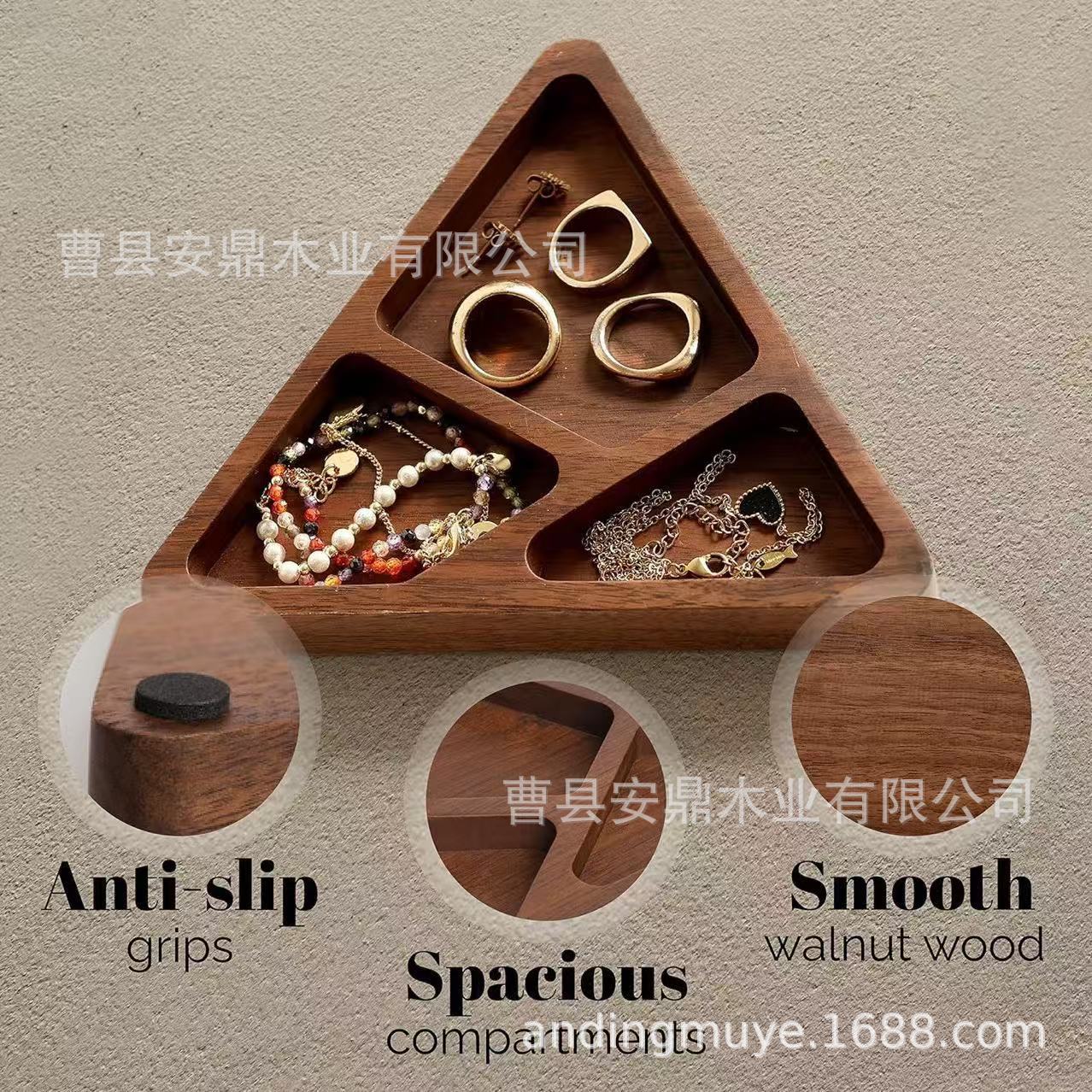 カスタマイズされた三角形のジュエリートレイ木製分離ウォールナットカラージュエリーリングネックレスイヤリング収納トレイ