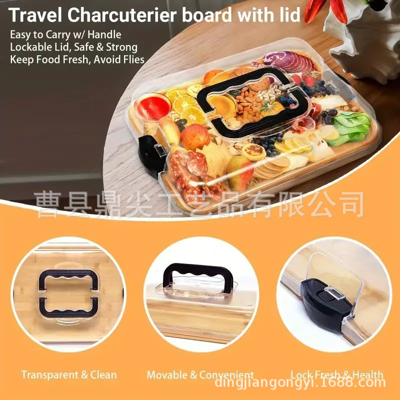 クロスボーダー竹調理トレイキッチンピクニック木製チーズまな板リビングルームフルーツコンパートメント無垢材トレイ