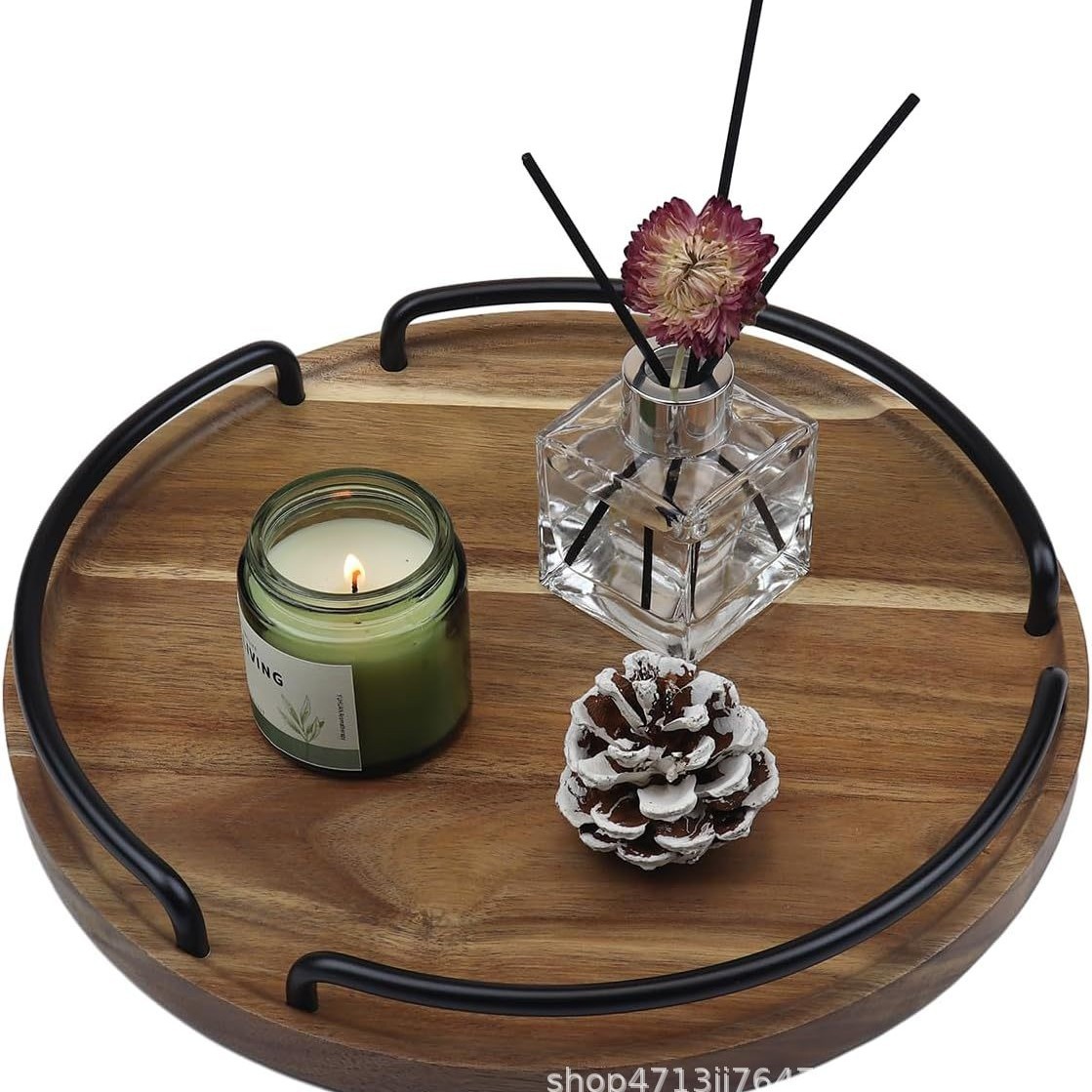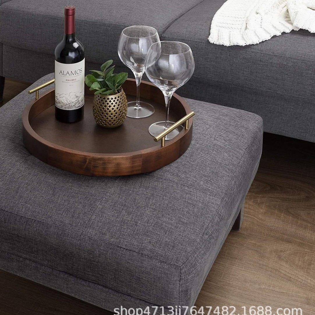 木製アカシアラウンド収納プレート金属無垢材デスクトップデザートプレートフルーツプレートティートレイカップトレイ
