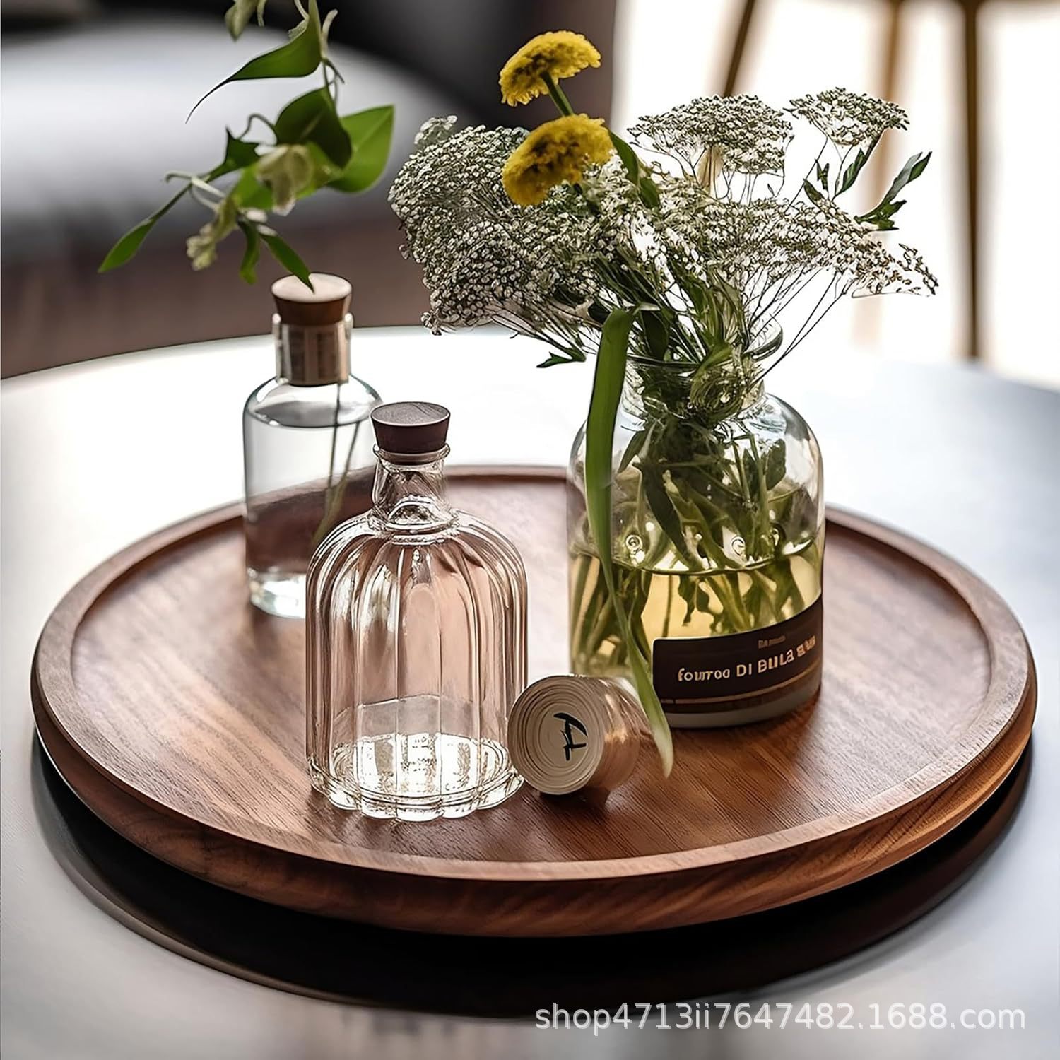 さまざまなサイズのアロマキャンドルディスプレイデスクトップストレージトレイデスクトップ雑貨整理トレイラウンドアカシアウッドトレイ