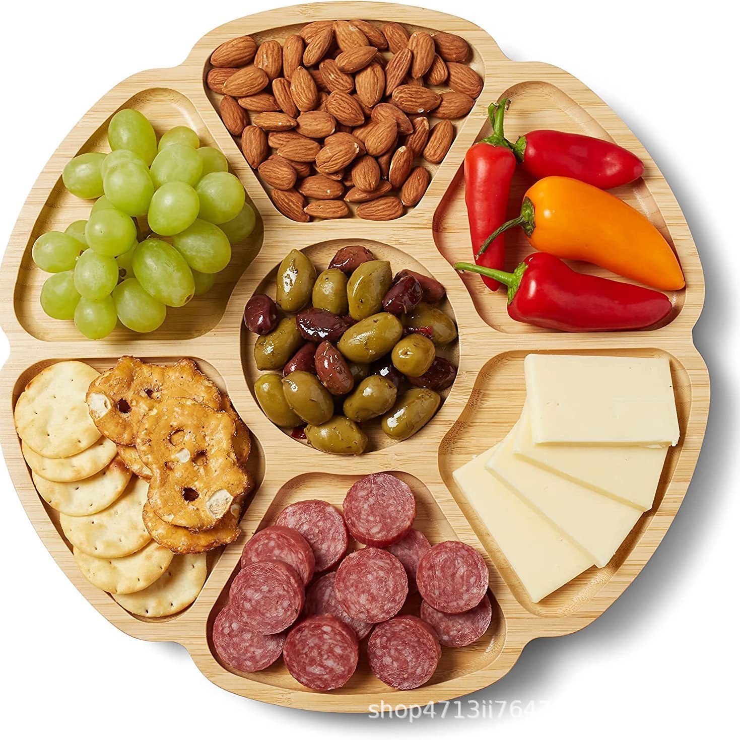 竹の花の形をした回転トレイ鍋レストランの仕切り付き木製トレイコーヒーテーブルスナックナッツ木製トレイ