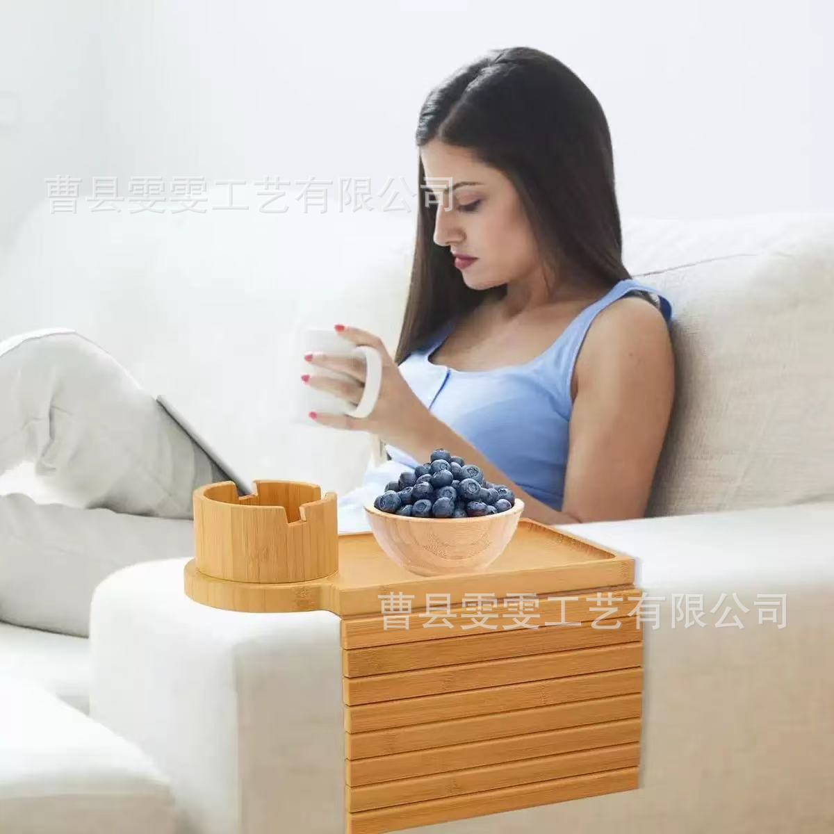 折り畳み式の怠け者の間食の木のトレーのソファーの手すりの木製の収納盤の新型の杯の棚の竹の手すりのトレー