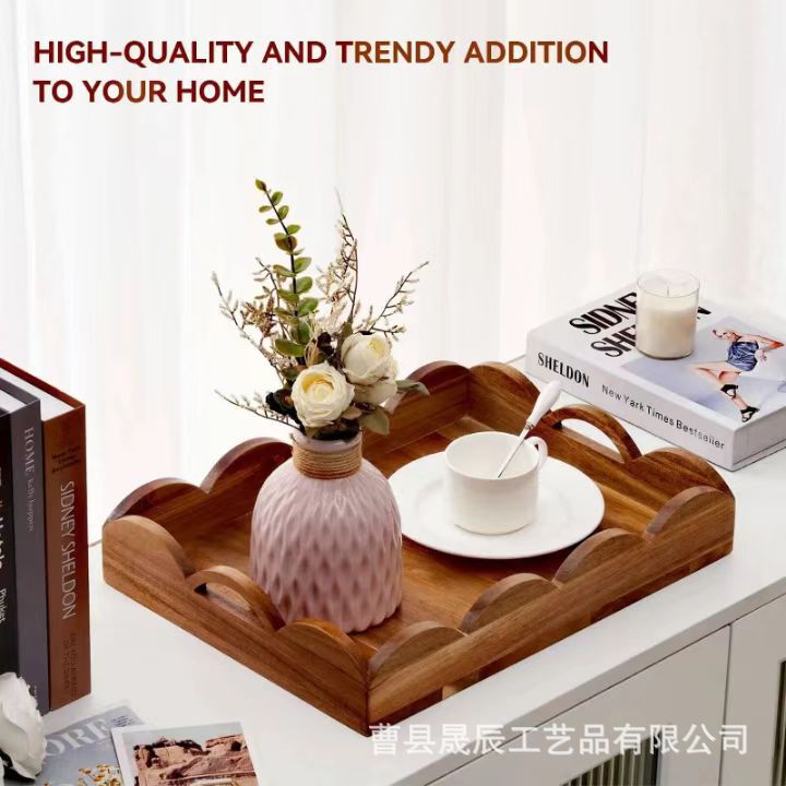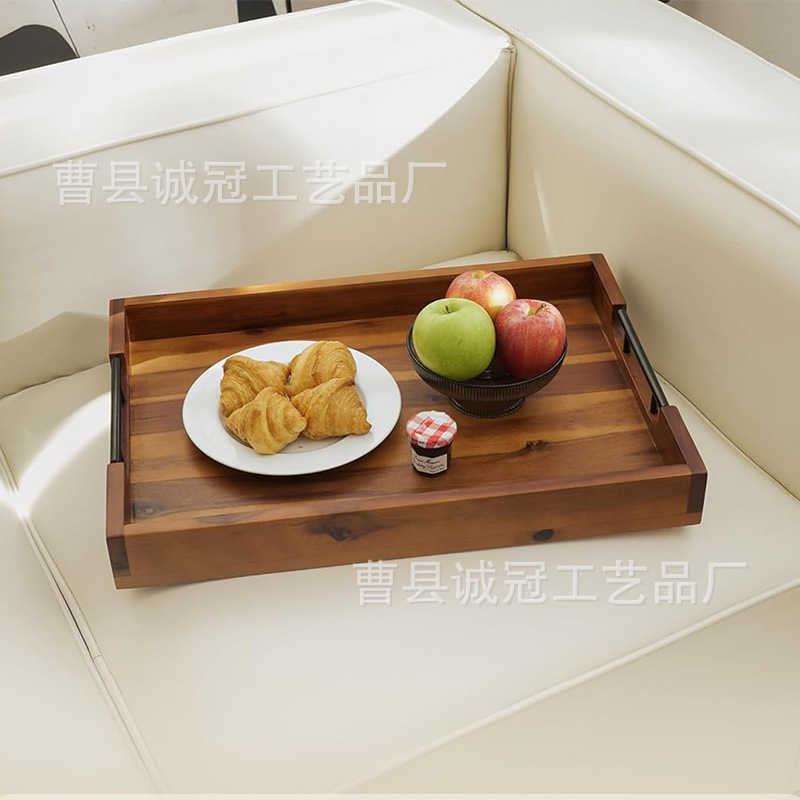 アカシア材ハンドルトレイレストラン長方形装飾スナックケーキ木製トレイ家庭用無垢材朝食トレイ