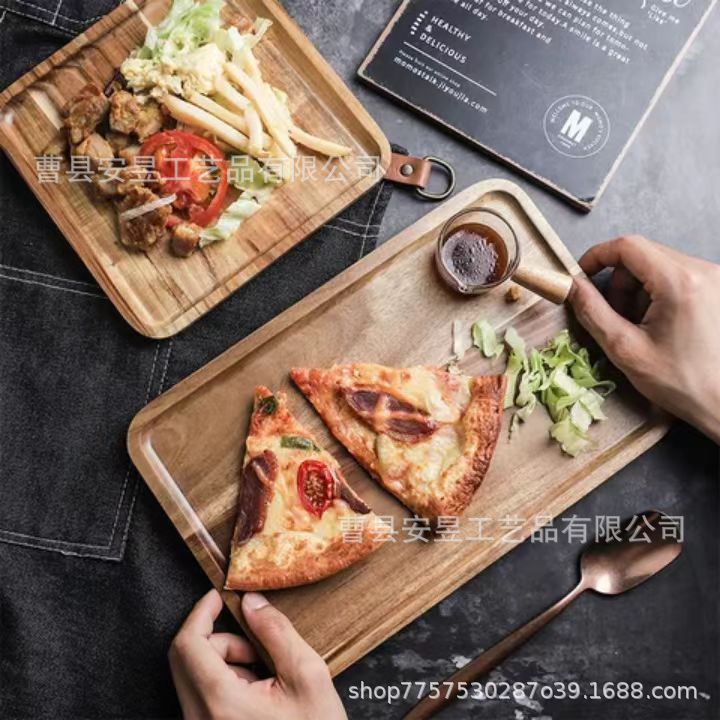 日本製アカシア木製トレイレストランパーティースクエアデリステーキフルーツディナープレートホームパン朝食プレート