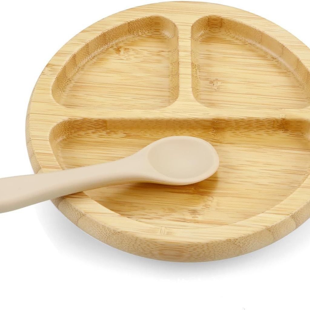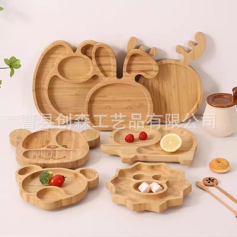 アマゾンの新しい赤ちゃん竹食器幼稚園漫画象分割食品トレイ子供の竹ディナープレート卸売