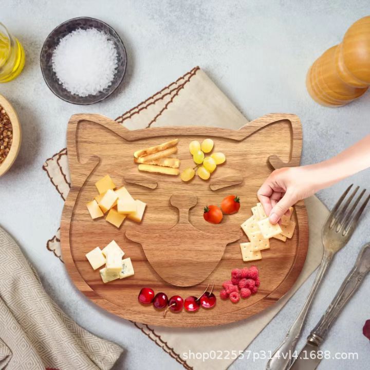 木製漫画動物トレイレストランパーティーデリステーキピザディナープレートキッチン無垢材サービングトレイ
