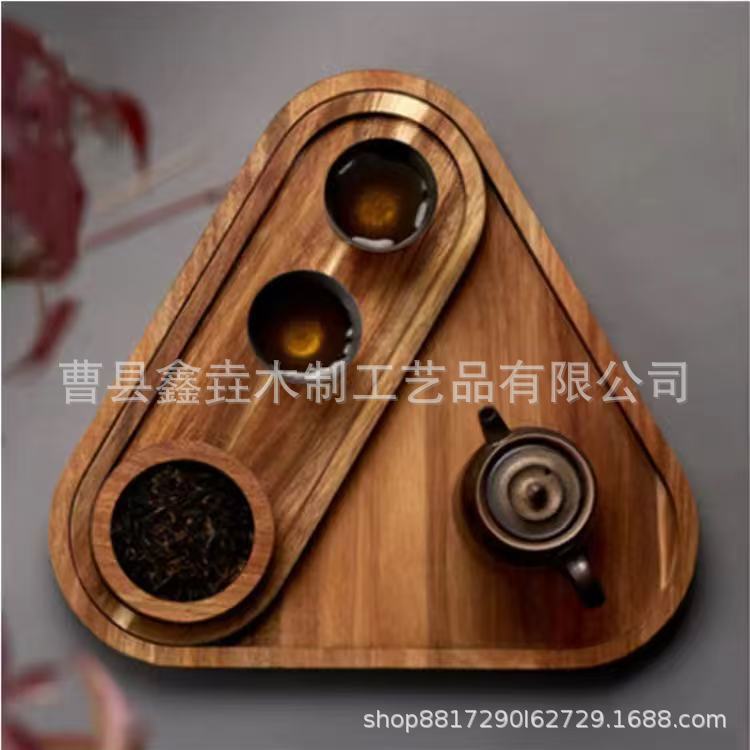 木の三角形の中国式のお茶の皿のアイデアのアカシアの木の果物の皿の家庭用のお菓子のパンのお菓子の皿の実木のトレー