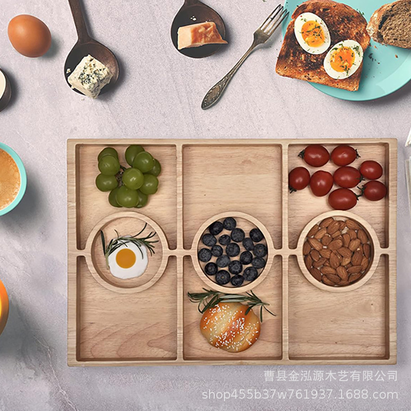 クリエイティブな無垢材の漫画トレイ、家庭用子供用栄養補助食品トレイ、フルーツデザートトレイ、スナックトレイ、分割された木製ディナートレイ