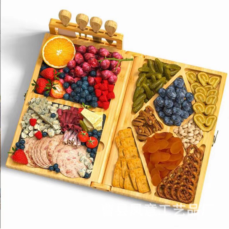 竹製折りたたみ可能なフルーツ菓子皿木製スプリットチーズチーズ板パーティー・パーティー・スナック皿