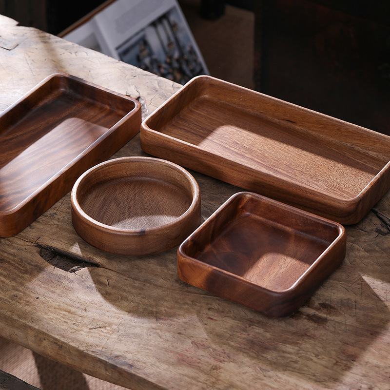 アカシア材用品の供給 和風正方形アカシア材ディナープレートトレイ フルーツスナックプレート アカシア材