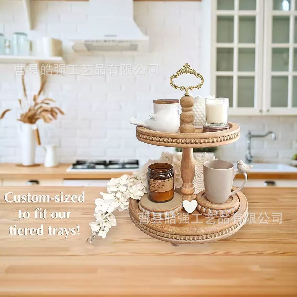 木製二層ケーキデザート棚家庭用木製ビーズトレイ家庭装飾棚円形キャンドルカップ棚