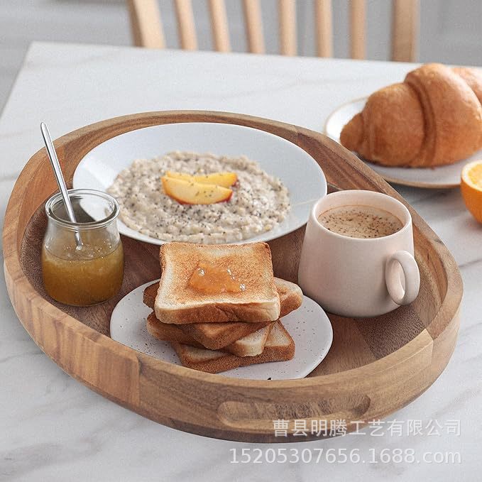 アカシア木製オーバルトレイ和風ディナーディナーデザートフルーツトレイデスクトップ多機能ジュエリー雑貨収納トレイ