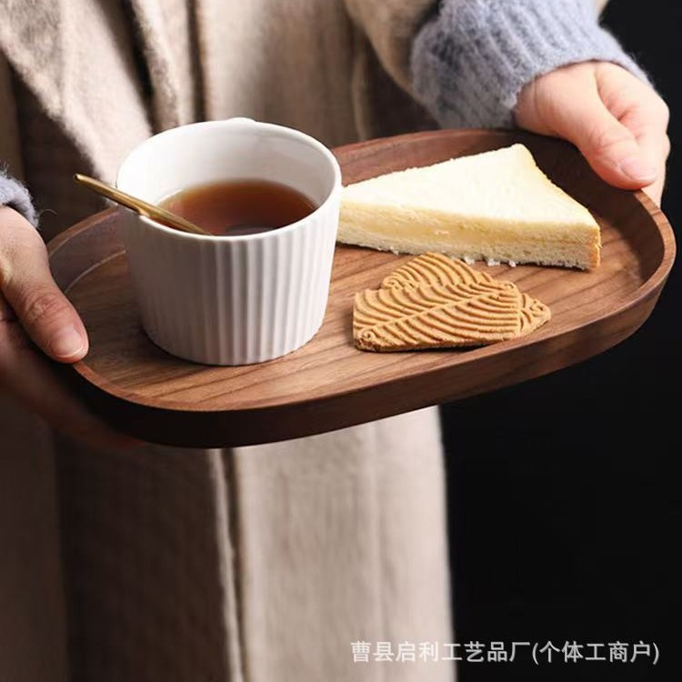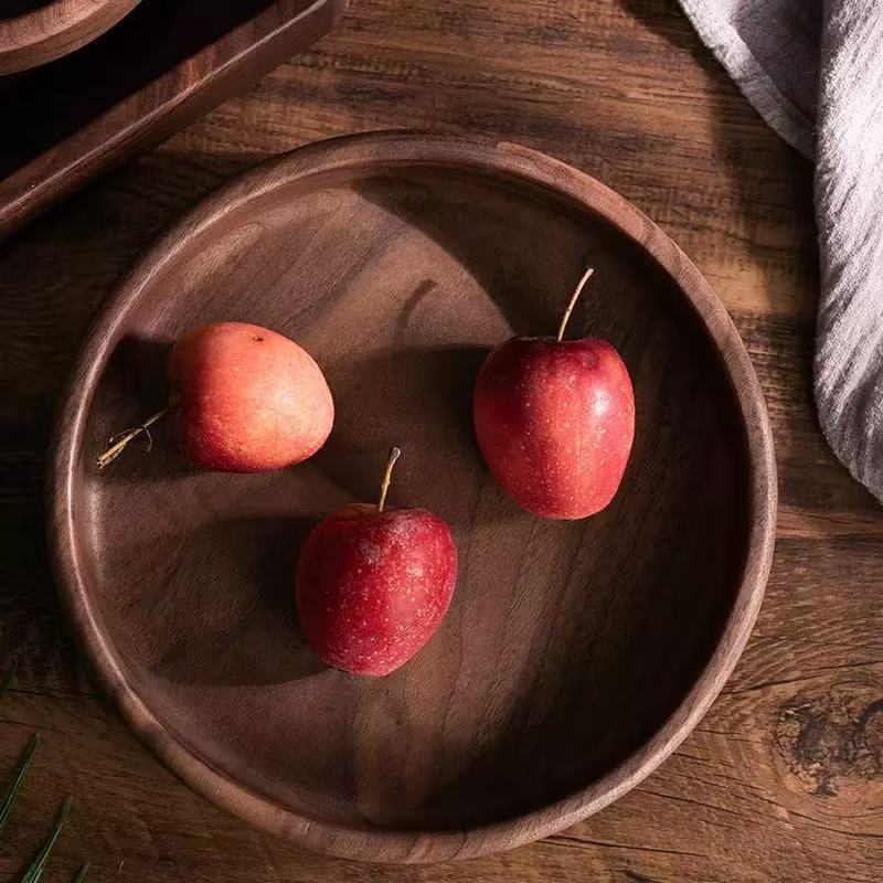 家庭用キッチン胡桃木円形トレイレストラン実木菓子現代シンプル皿コーヒー木製ホール茶皿