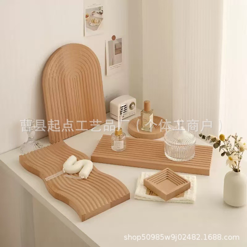 創造的な実木トレイ家庭用不規則な朝食皿デスクトップ香薫収納皿午後茶木製コーヒートレイ