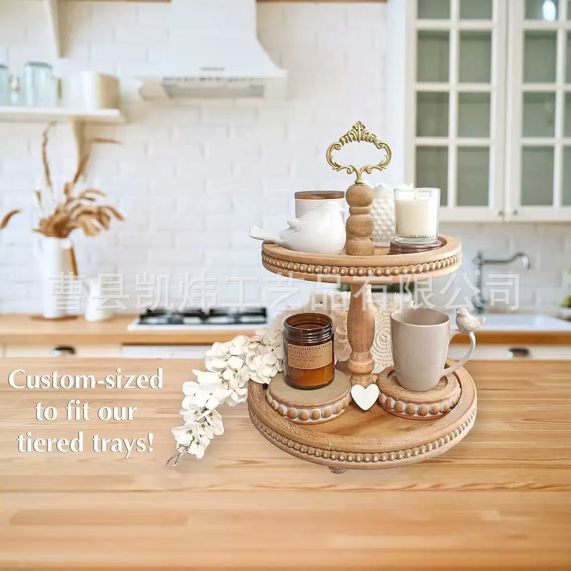 木製二層木製ビーズトレイ家庭用円形ケーキ棚デザート台家庭装飾棚ろうそく棚