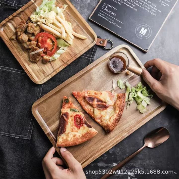 ハンドル付きアカシア木まな板パーティー熟食ステーキパスタ皿角ピザチーズ板
