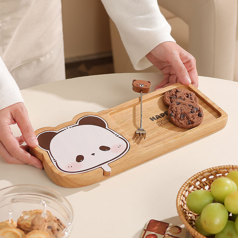 クリエイティブ木製トレイ家庭用かわいいアニメ分格食皿果物菓子置き皿実木赤ちゃん補助食皿