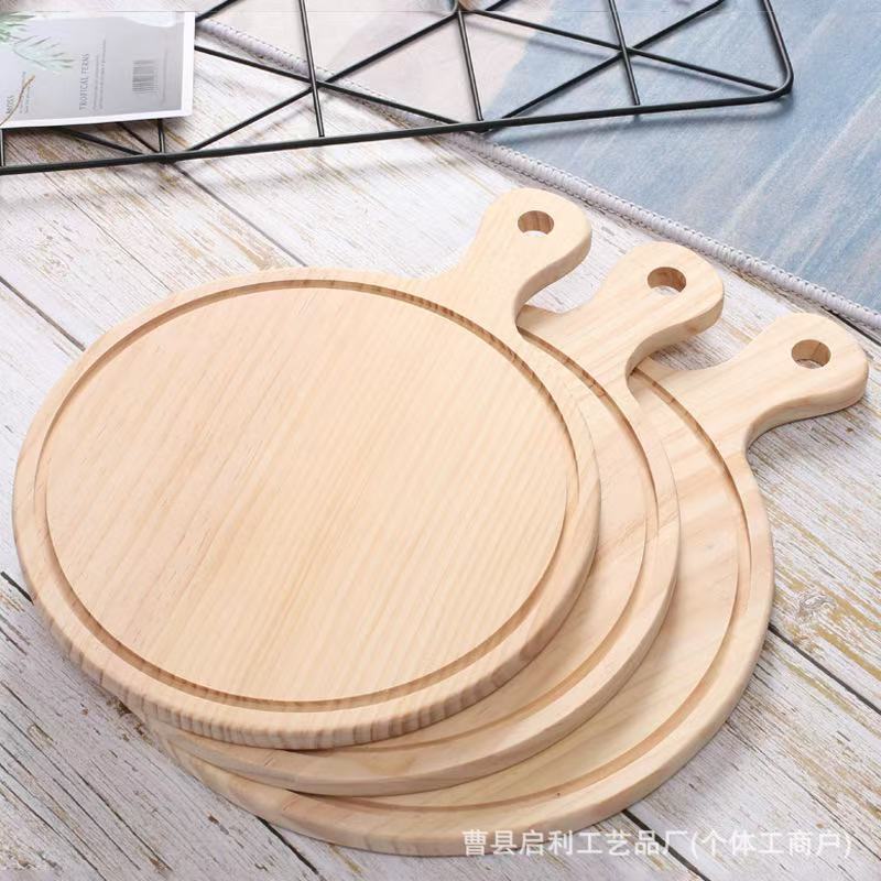 日本式円形木製ピザ皿ハンドル付き竹トレイレストラン木ピザ皿実木ピザ板バーベキュー皿
