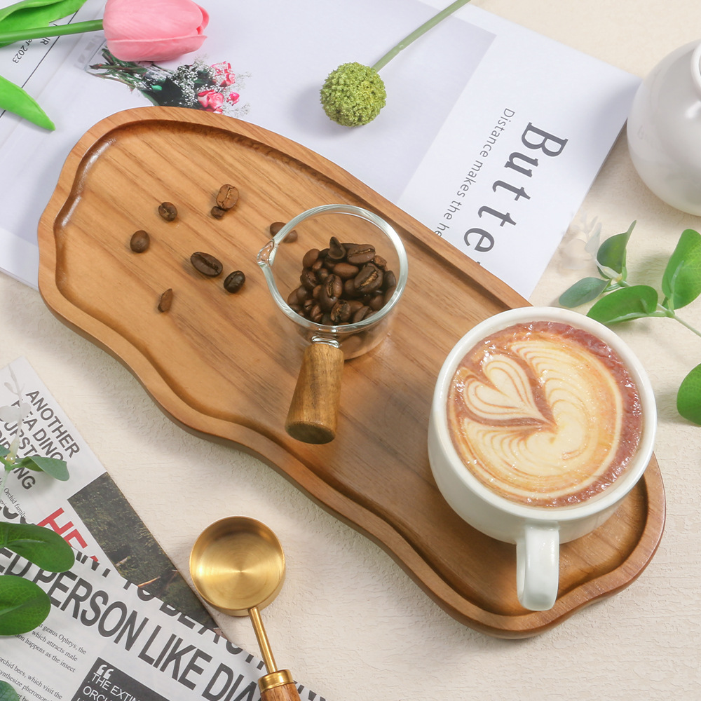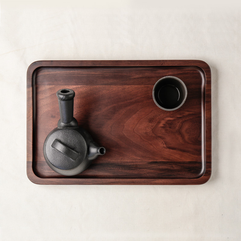 長方形の黒胡桃の実木のお茶の皿の喫茶店のトレーの家庭用のコップの皿の木製の料理の皿