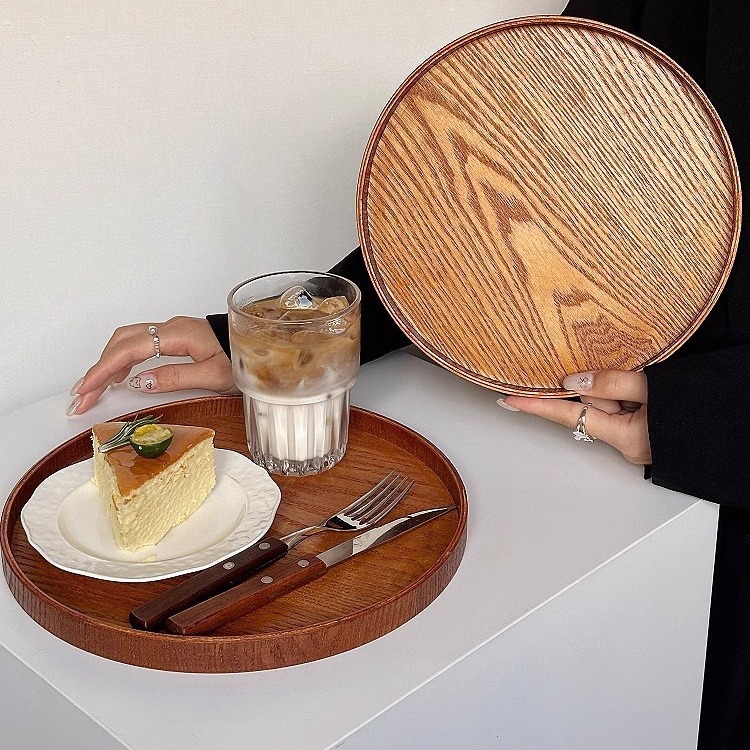 木製アロマキャンドル装飾トレイ家庭用レトロ円形皿果物スナックケーキ皿実木皿