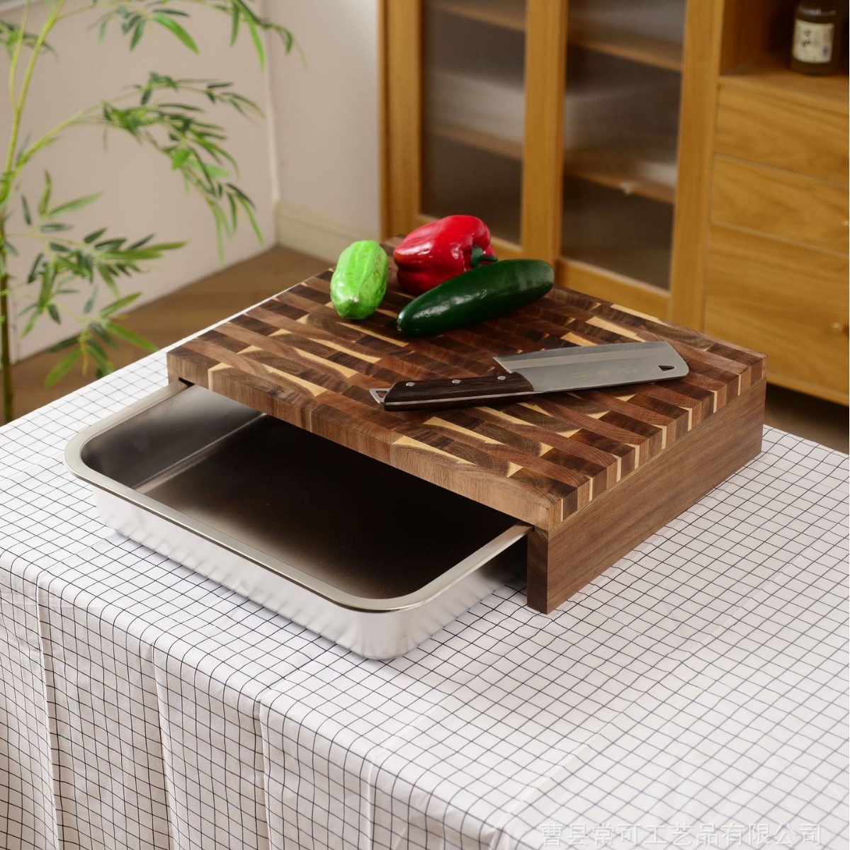 無垢材まな板家庭用アカシア木製市松模様まな板キッチン木製フルーツ二層収納まな板