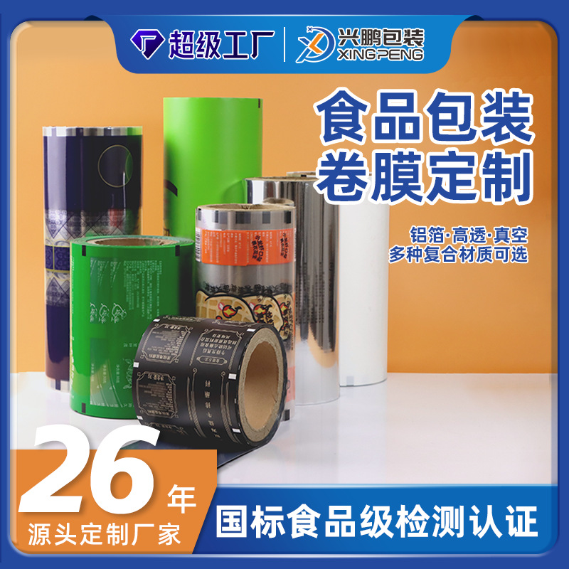食品自動包装フィルムカラー印刷複合フィルムフィルムカスタムpetアルミ箔封口カバーフィルム包装カスタム
