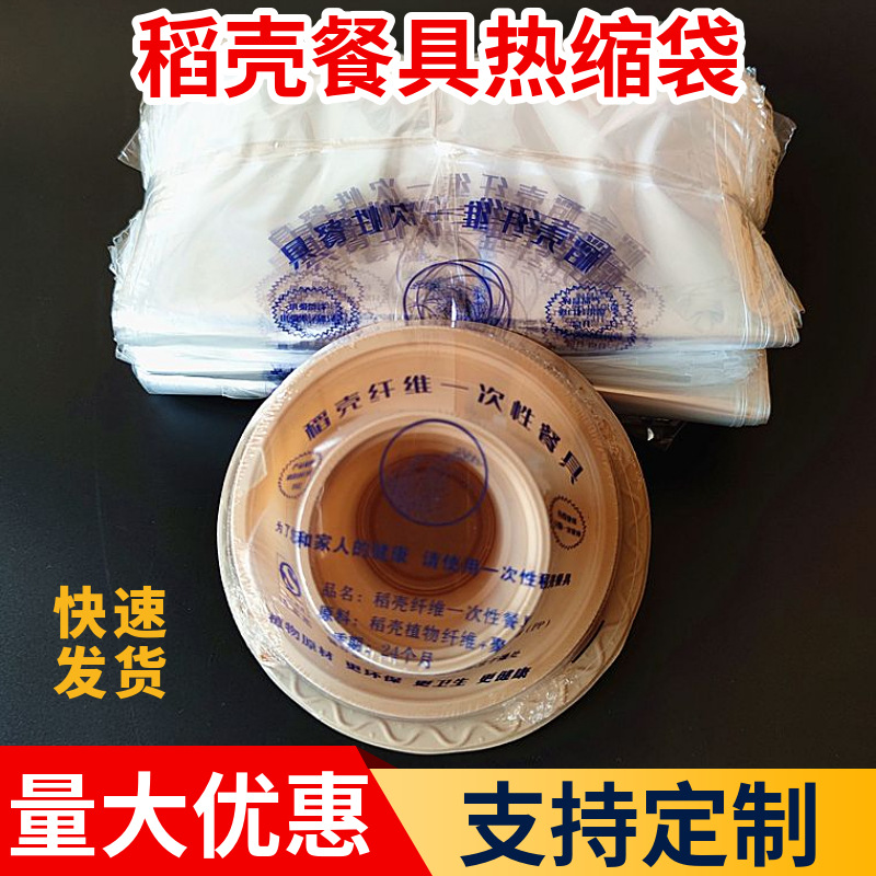 使い捨て籾殻食器熱収縮袋 4 ピース滅菌食器包装袋環境に優しい食器 POF 熱収縮フィルム