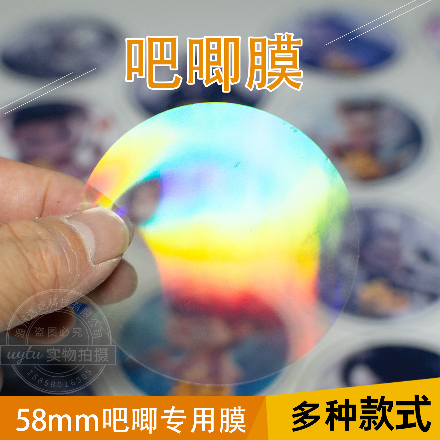 無地レインボーレーザーフィルムガラスブロークンスター58mmバーフィルム7cmバッジフィルムブリキ丸フィルム透明フィルム