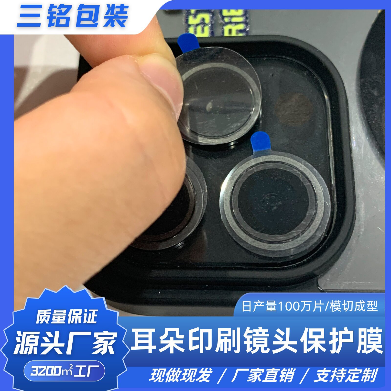 携帯電話カメラレンズ透明フィルム耳印刷ブルー印刷接着剤なしフィルムペット保護フィルムアクリル