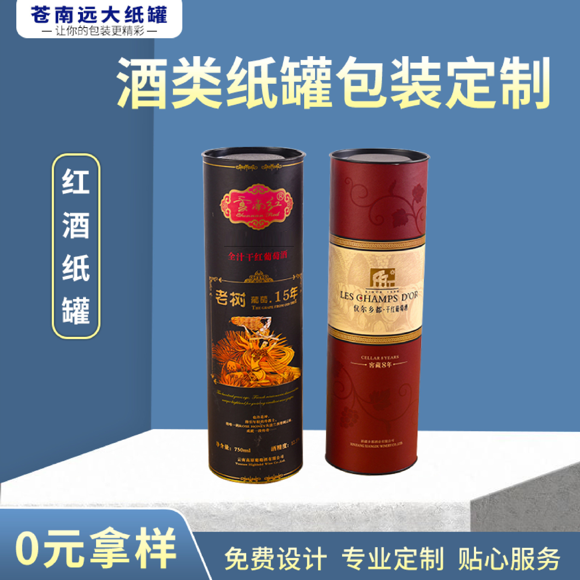 カスタム高級ワイン紙缶天地蓋円筒紙缶箔押し技術酒類包装紙缶はロゴ文字を印刷できる