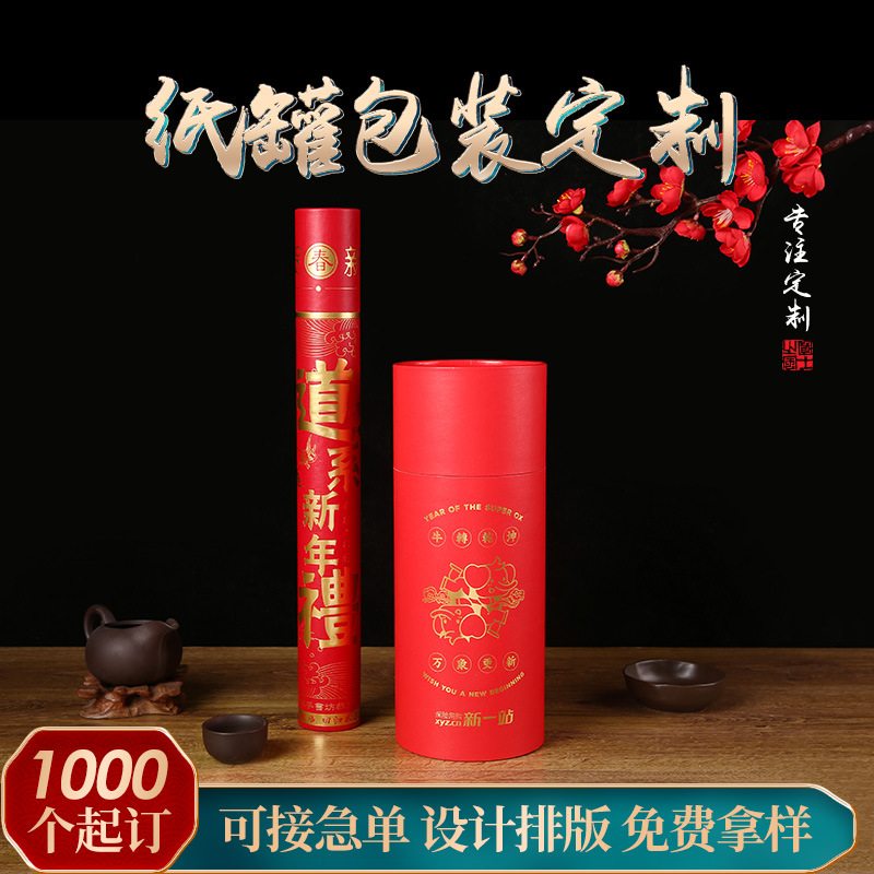 カスタマイズ旧正月対聯紙缶春聯爆竹ポスター長紙筒プレゼントワインチベット仏香筒円紙缶カスタマイズ