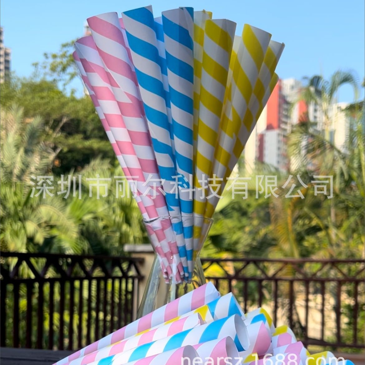 源工場製造の綿菓子用紙コーン、カラフルな紙コーン、紙棒、紙筒、綿菓子用紙棒