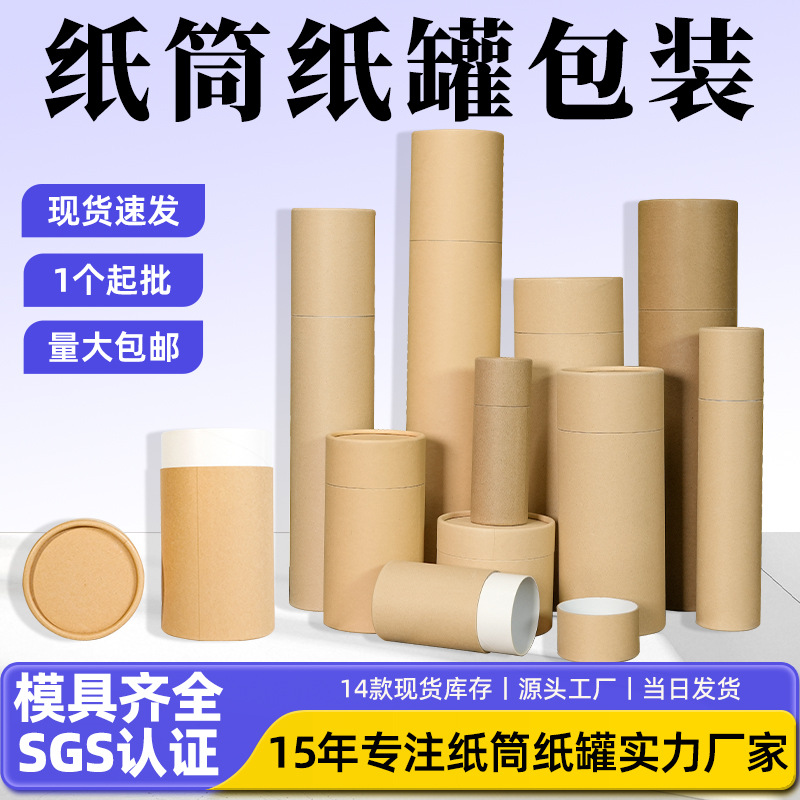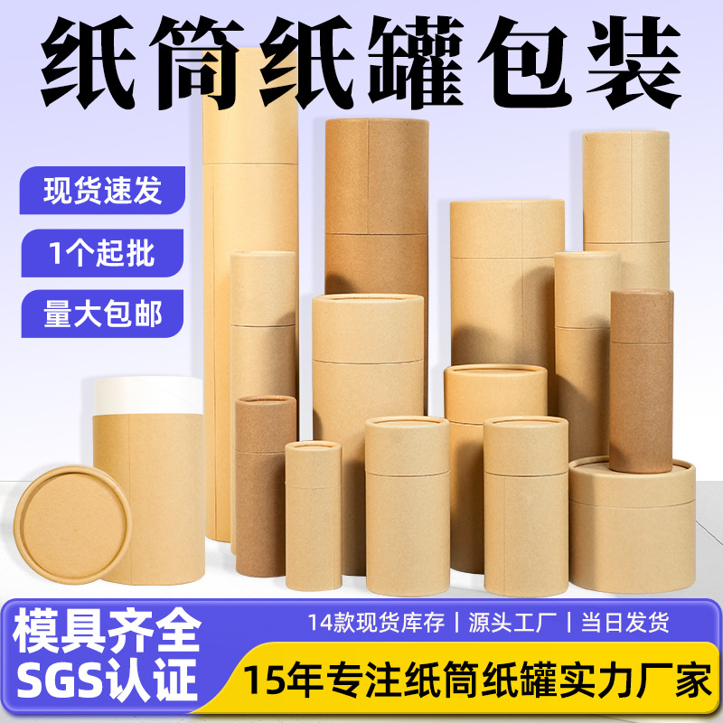 現物クラフト紙缶紙筒紙管食品茶葉円筒防湿防漏液中空筒牛革筒包装