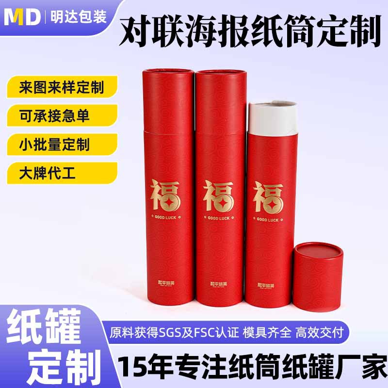 カスタム円形紙管包装箱対聯書画包装ギフトボックス春聯包装紙筒ギフトボックス蓋付き