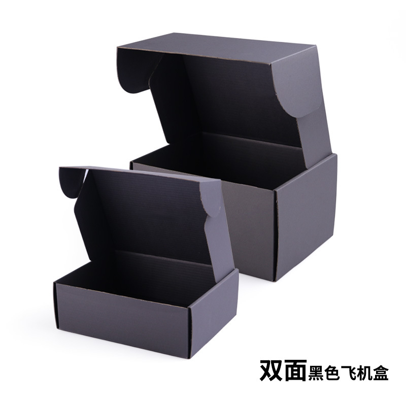 両面黒カード紙特硬飛行機箱現物印刷子供服包装箱カスタム黒段ボール飛行機箱