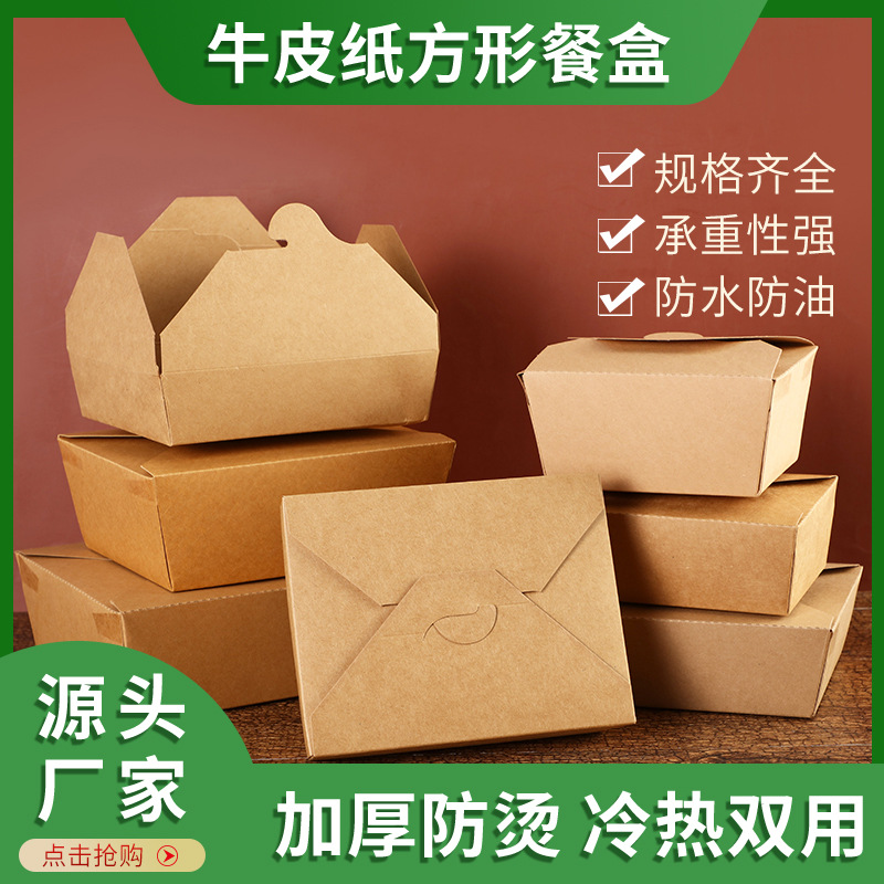 牛革紙箱折り畳み出前包装箱防水防油フライドチキン焼肉箱使い捨て角型サラダ箱
