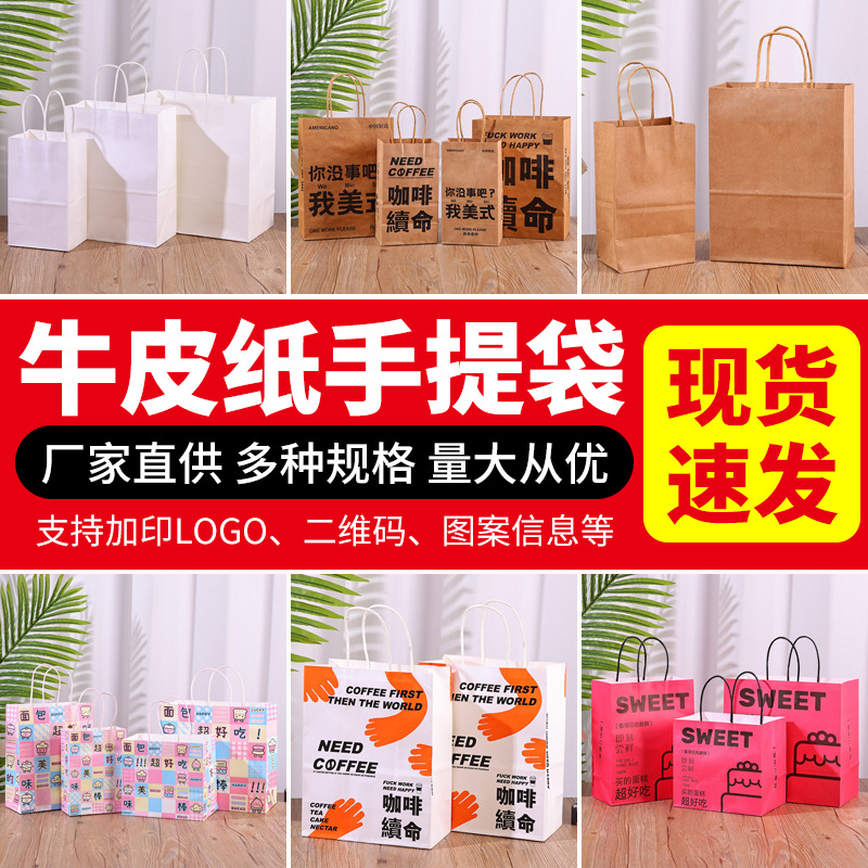 純色現物クラフト紙袋プレゼント手提げ袋ショッピング焙煎広告手提げ紙袋テイクアウトミルクティーバッグ