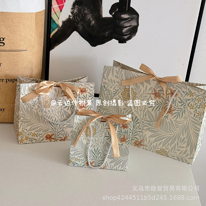 オリジナル森系百合プレゼント手提げ袋リボン付き蝶結び包装袋キャンディー服アクセサリー収納紙袋
