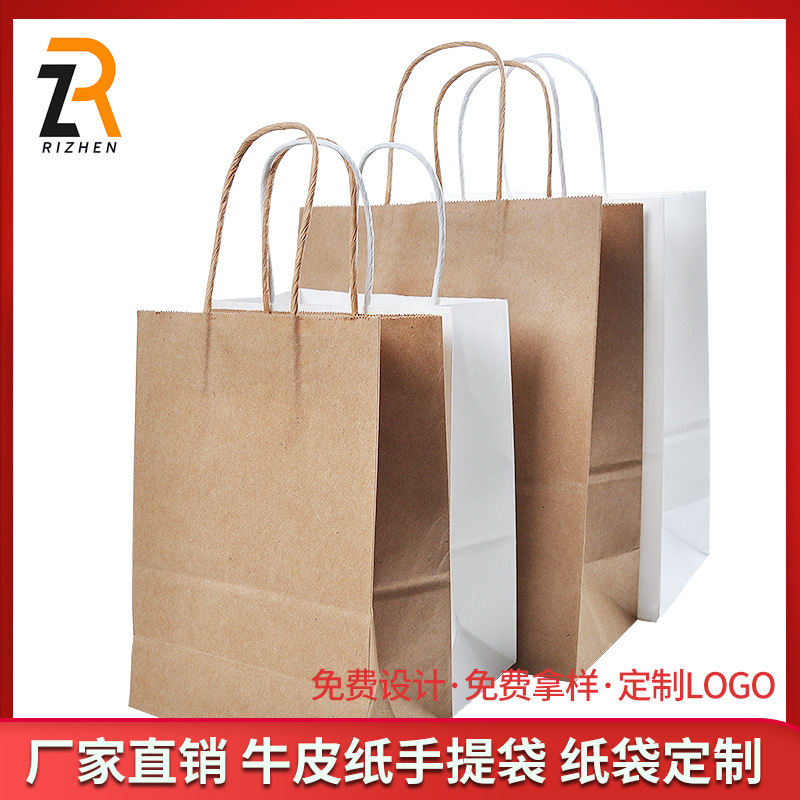 紙袋現物服装卸売り包装袋白カードショッピングプレゼント茶葉袋出前包装袋クラフト紙手提げ
