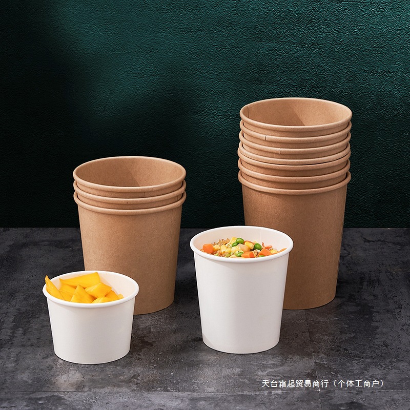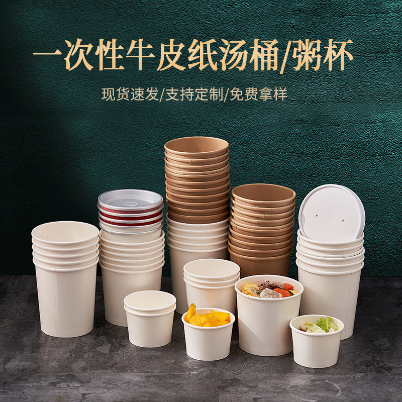 粥桶使い捨てクラフト紙スープ桶の出前梱包弁当箱焼き梨紙コップはロゴ円形梱包箱を決めることができる