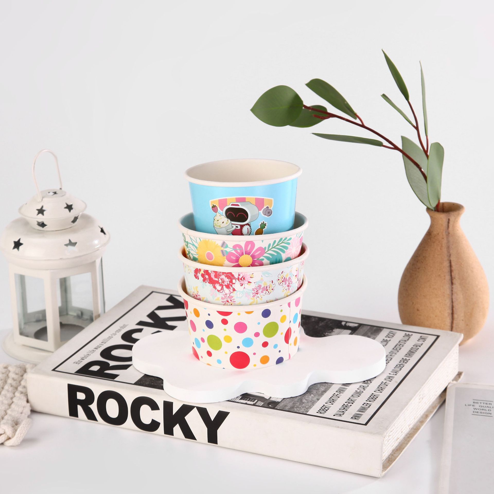 アイスクリーム紙コップ使い捨て卸売りアイスクリームボールデザートボウル食品級insアイスクリーム紙コップ多色アニメ