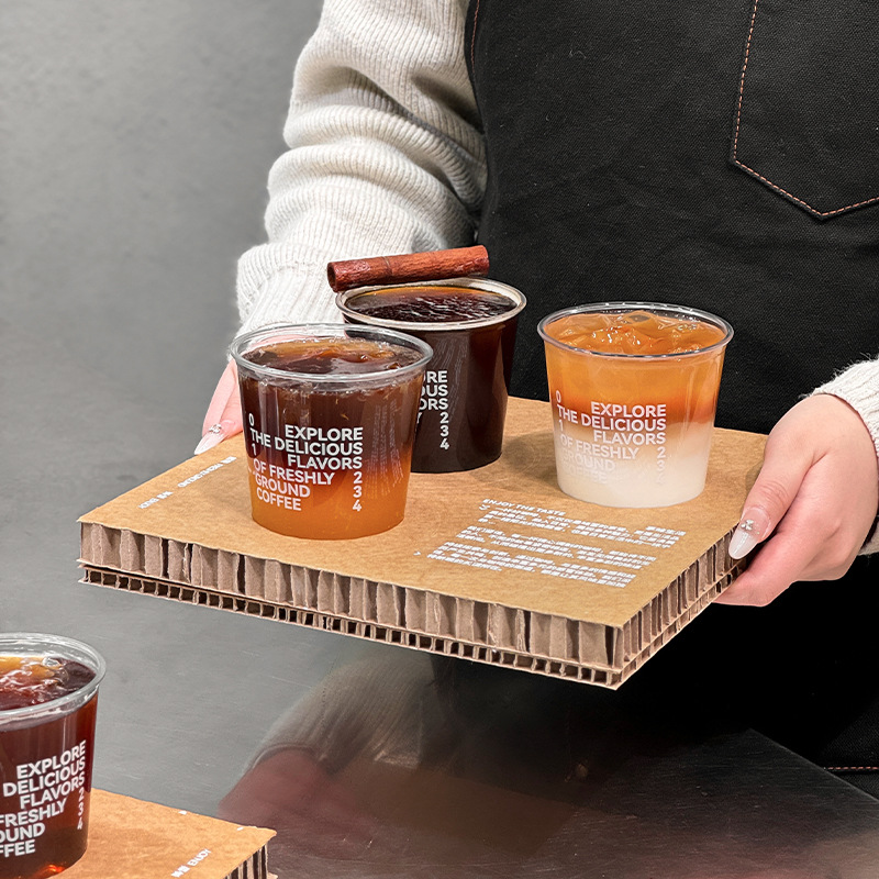 子犬の使い捨てコーヒーカップハニカム板紙ミルクティーの段ボール付き2杯コンボ試飲カップ展示棚トレイ