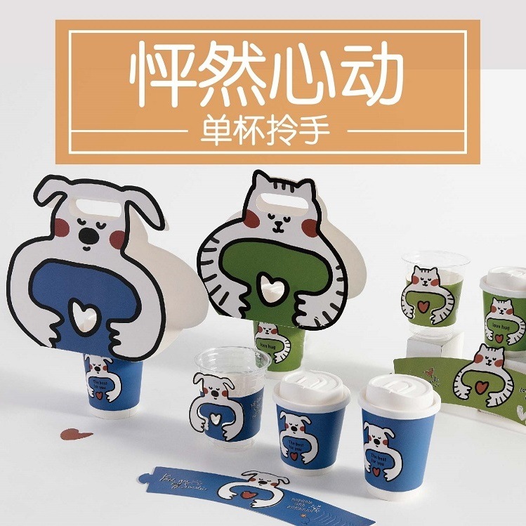 使い捨てコーヒードリンク包装カップ、シングルおよびダブルカップ、特殊形状ハンドル、ミルクティードリンク、テイクアウトポータブルカップホルダー、カップカバー
