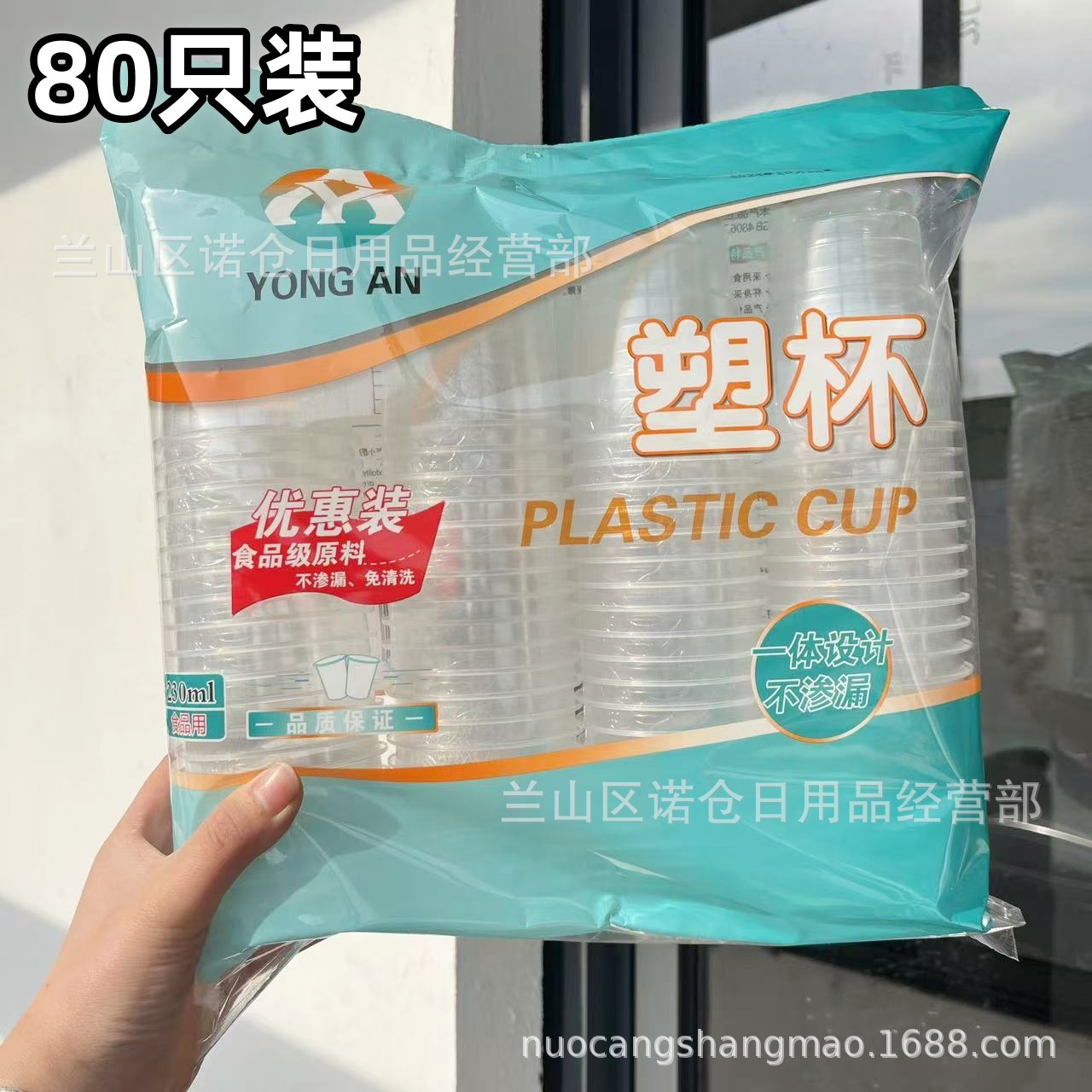 80個の使い捨てプラスチックカップ業務用カッププラスチックカップ家庭用透明使い捨てカップ卸売り