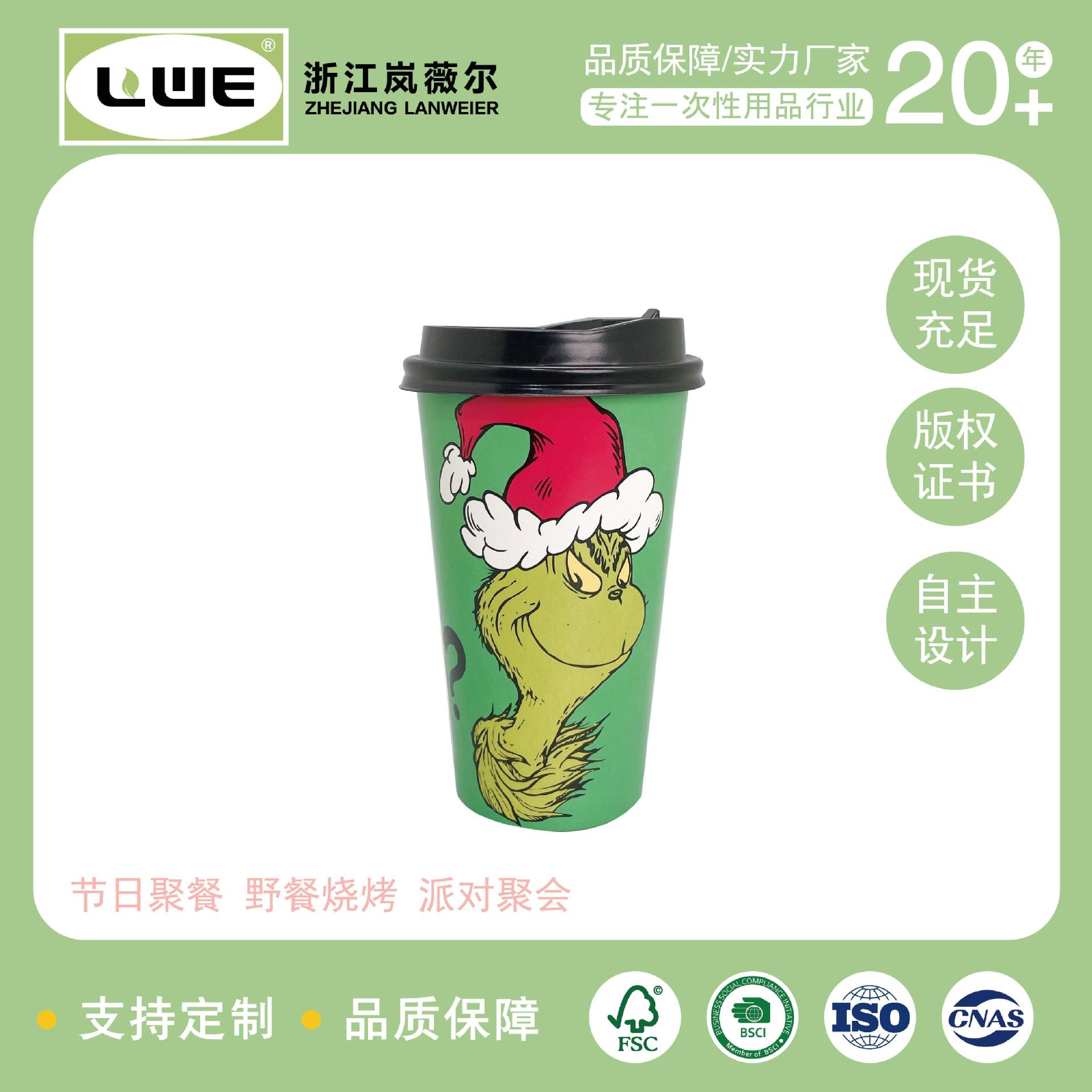 国境を越えた新しい使い捨て紙コップ蓋付き16オンスグリーン紙コップ児童パーティー飲料カップミルクティー会食カップ