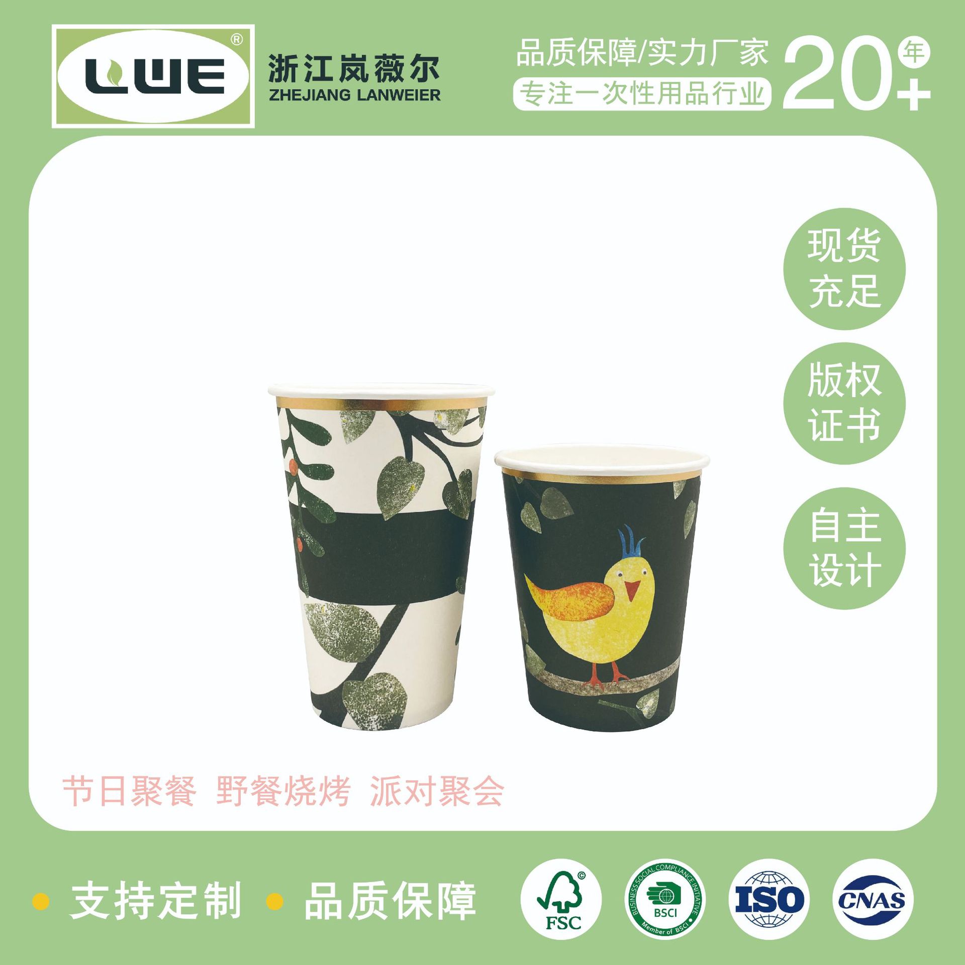 使い捨て紙コップ12オンス木の葉紙コップ9オンス小鳥要素春秋紙コップパーティー会食濃い系コップ
