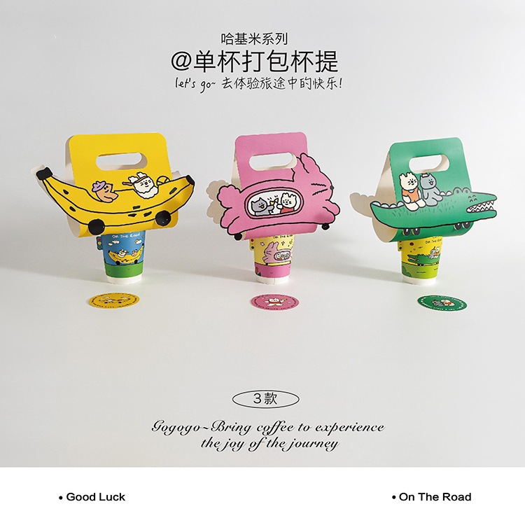 新しいコーヒーミルクティーパックカップハンドル厚みのある白いボール紙テイクアウトシングルカップホルダークリエイティブドリンクトイテイクアウトカップセット